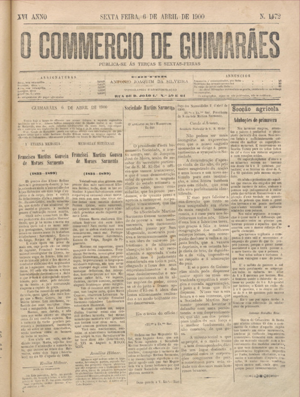 Comércio de Guimarães, nº 1472, de 06/04/1900