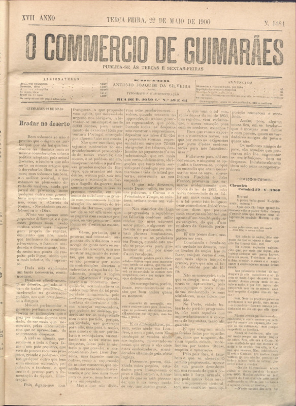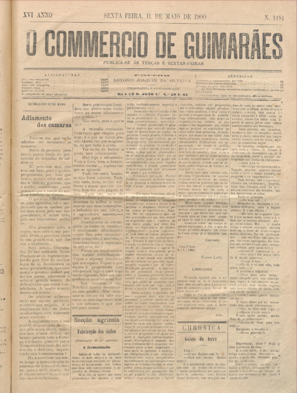 Comércio de Guimarães, nº 1484, de 22/05/1900