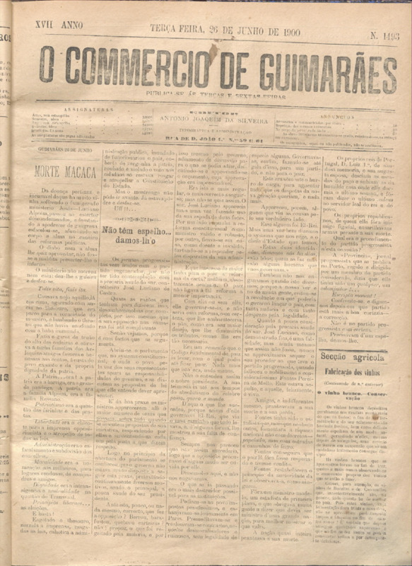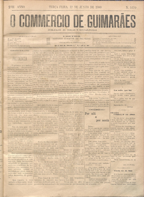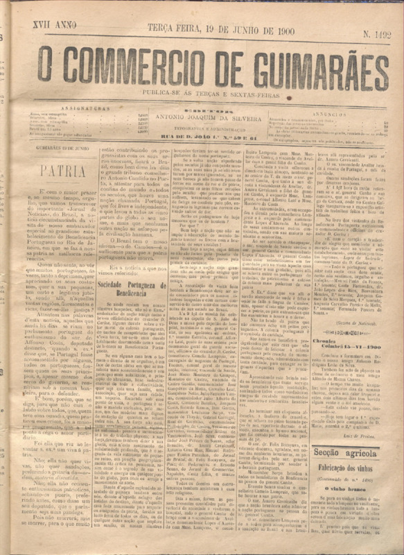 Comércio de Guimarães, nº 1493, de 19/06/1900