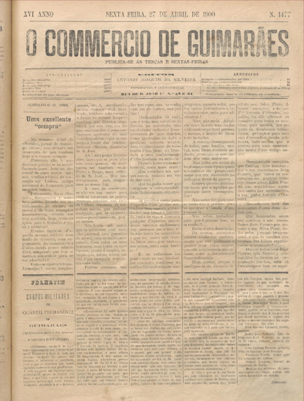 Comércio de Guimarães, nº 1477, de 27/04/1900