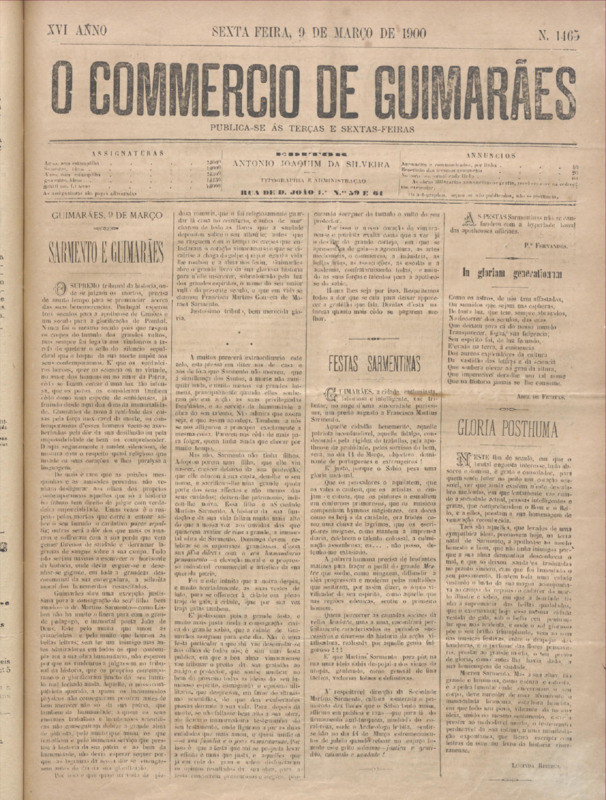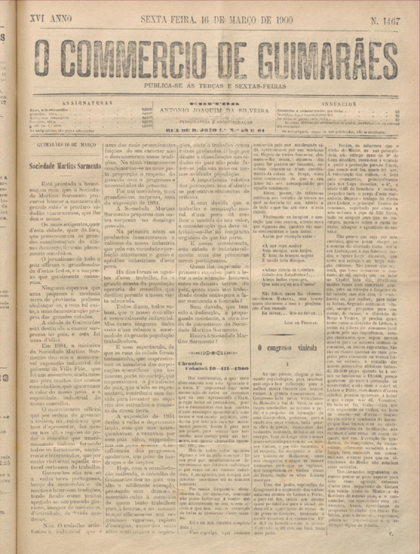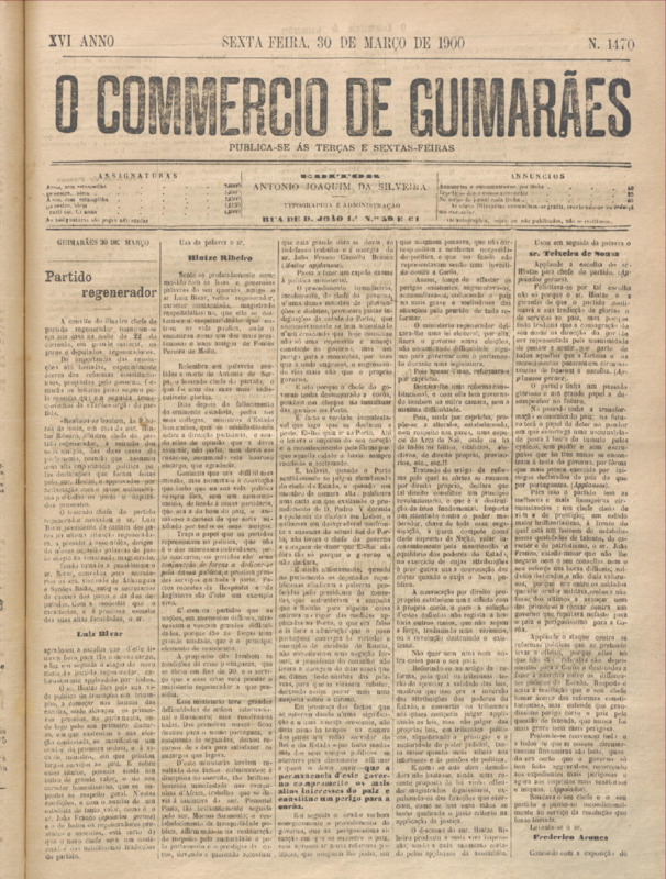 Comércio de Guimarães, nº 1467, de 16/03/1900