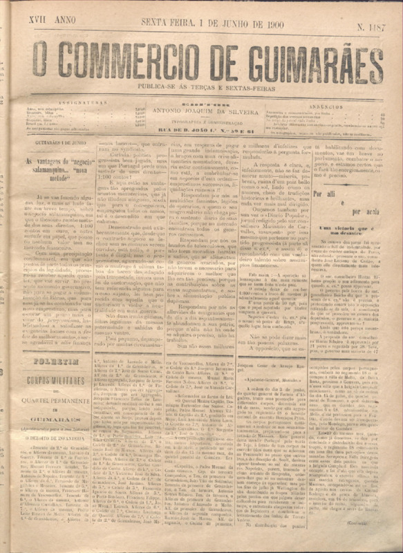 Comércio de Guimarães, nº 1487, de 01/06/1900