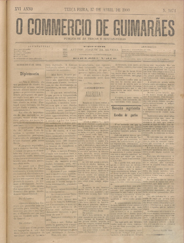 Comércio de Guimarães, nº 1474, de 17/04/1900