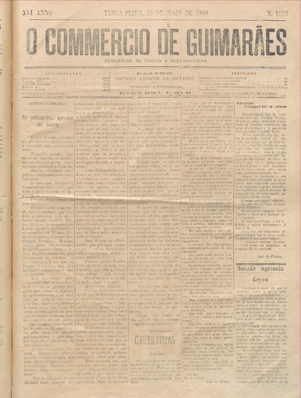 Comércio de Guimarães, nº 1482, de 15/05/1900