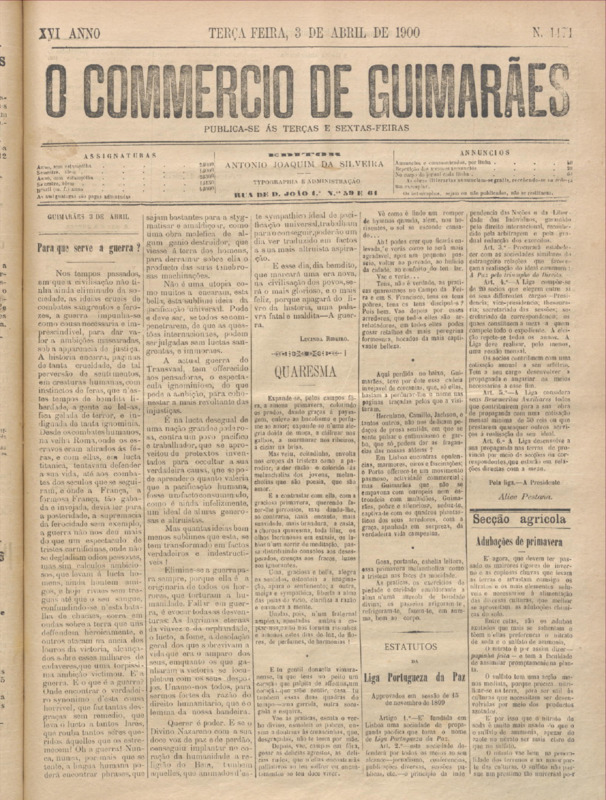 Comércio de Guimarães, nº 1471, de 03/04/1900
