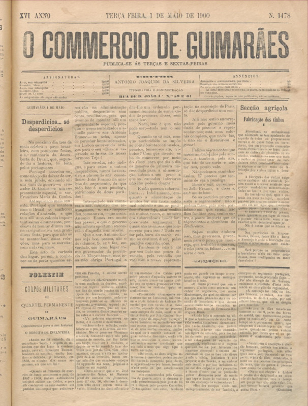 Comércio de Guimarães, nº 1478, de 01/05/1900
