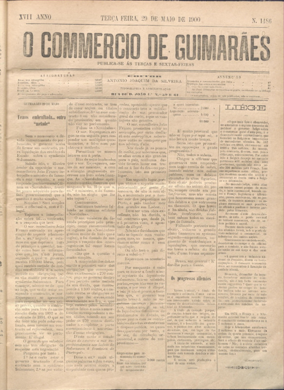 Comércio de Guimarães, nº 1486, de 29/05/1900
