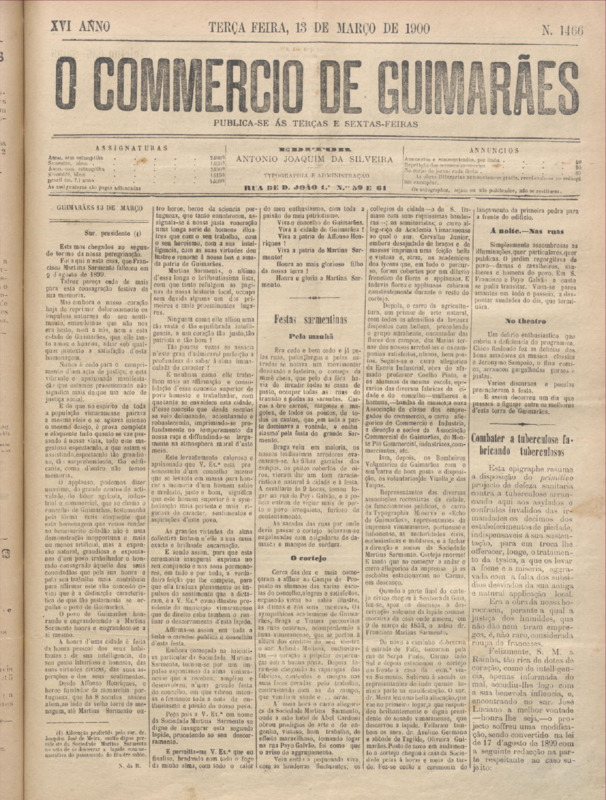 Comércio de Guimarães, nº 1466, de 13/03/1900
