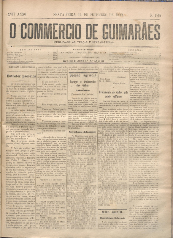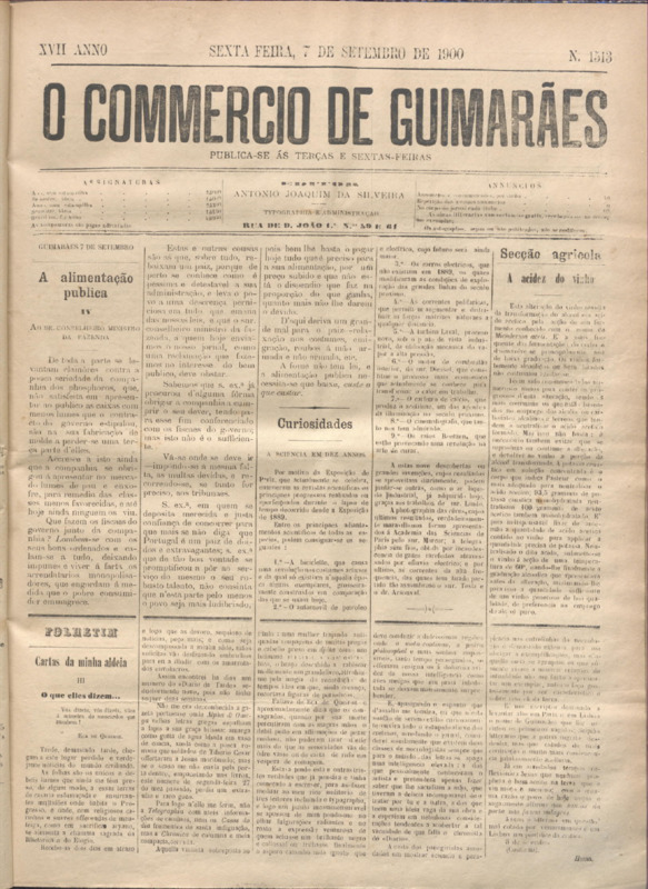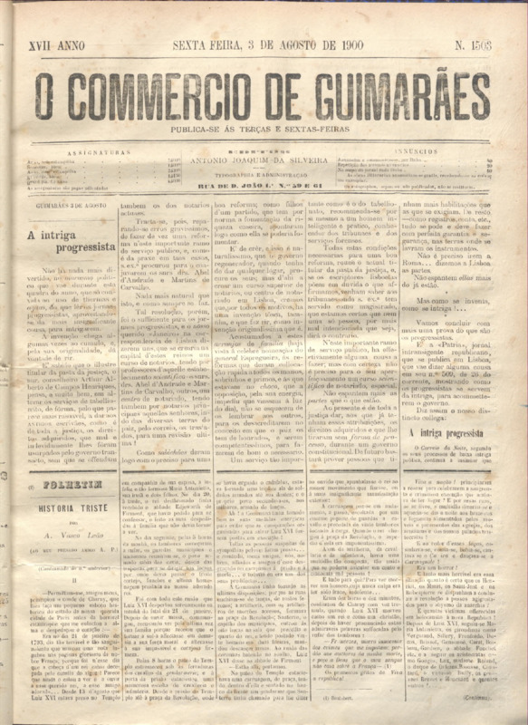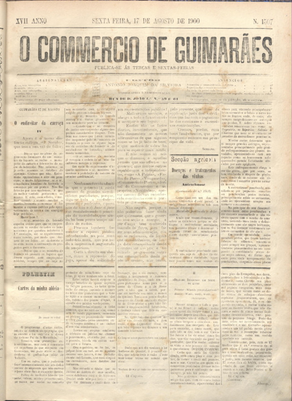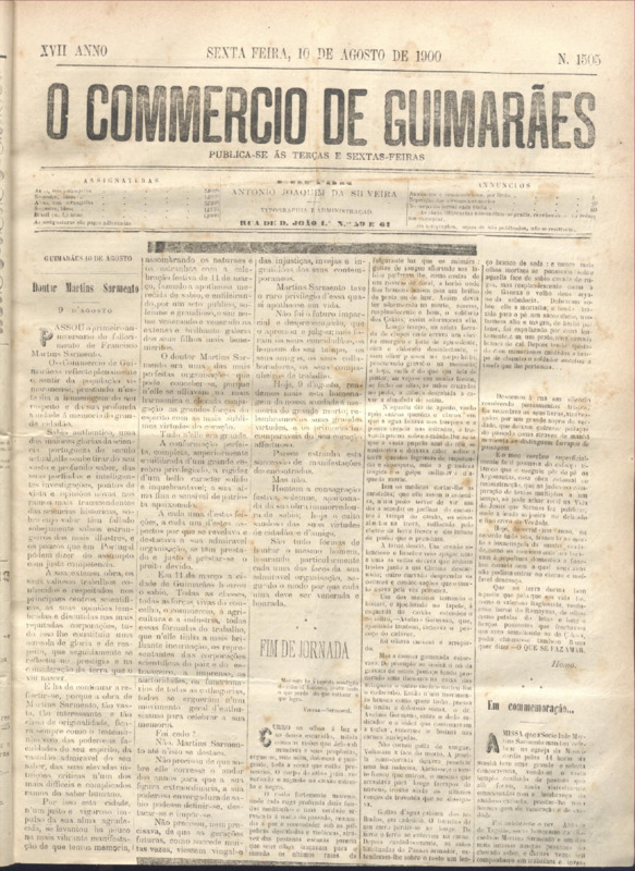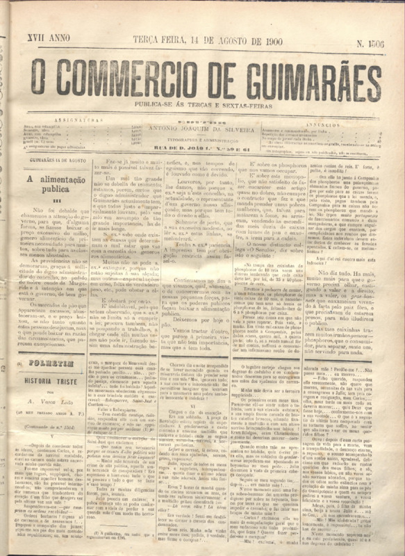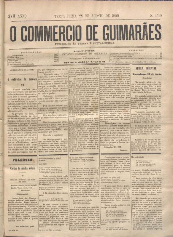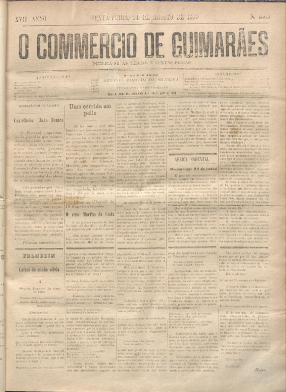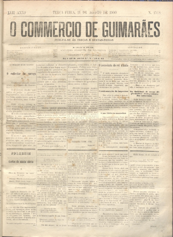 Comércio de Guimarães, nº 1508, de 17/08/1900