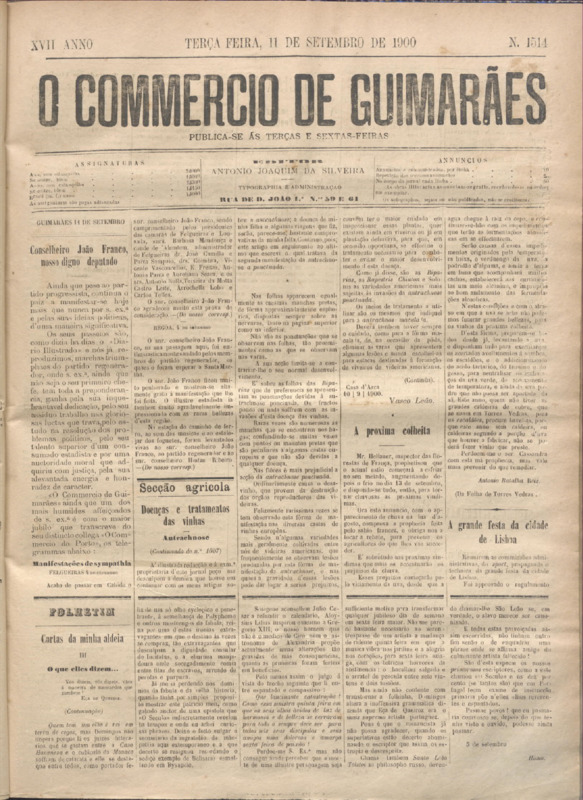 Comércio de Guimarães, nº 1516, de 14/09/1900