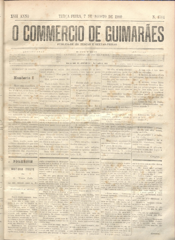 Comércio de Guimarães, nº 1504, de 03/08/1900