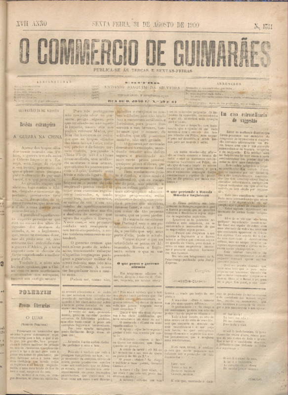 Comércio de Guimarães, nº 1509, de 21/08/1900