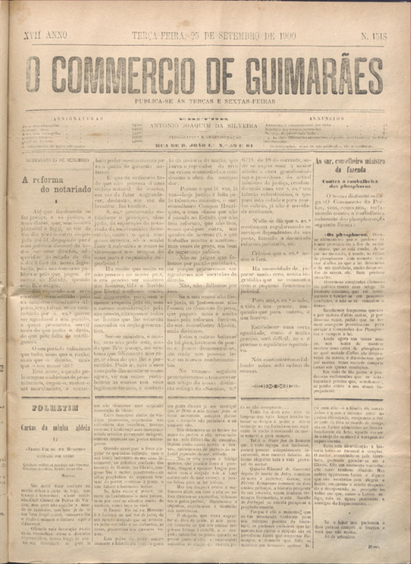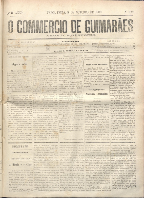 Comércio de Guimarães, nº 1523, de 09/10/1900