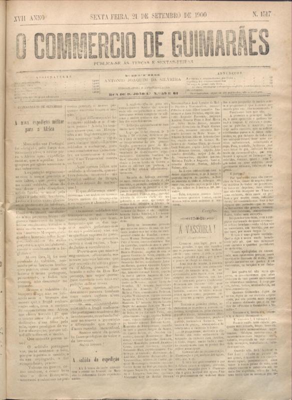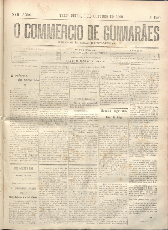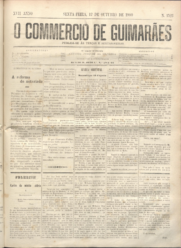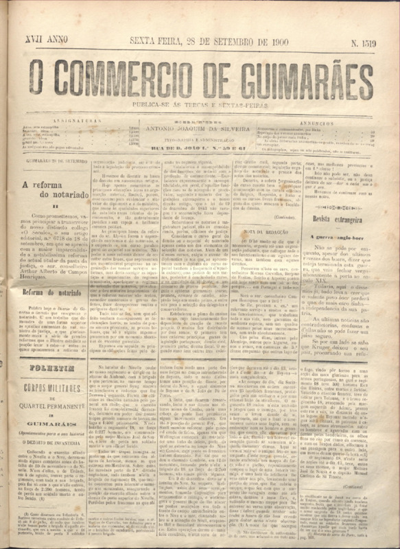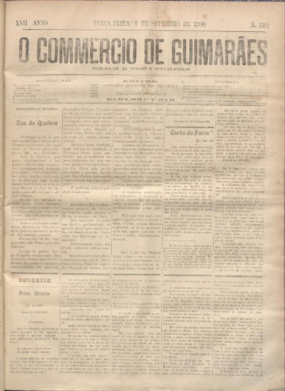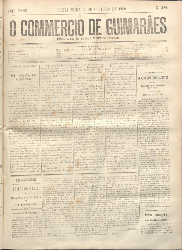Comércio de Guimarães, nº 1521, de 02/10/1900