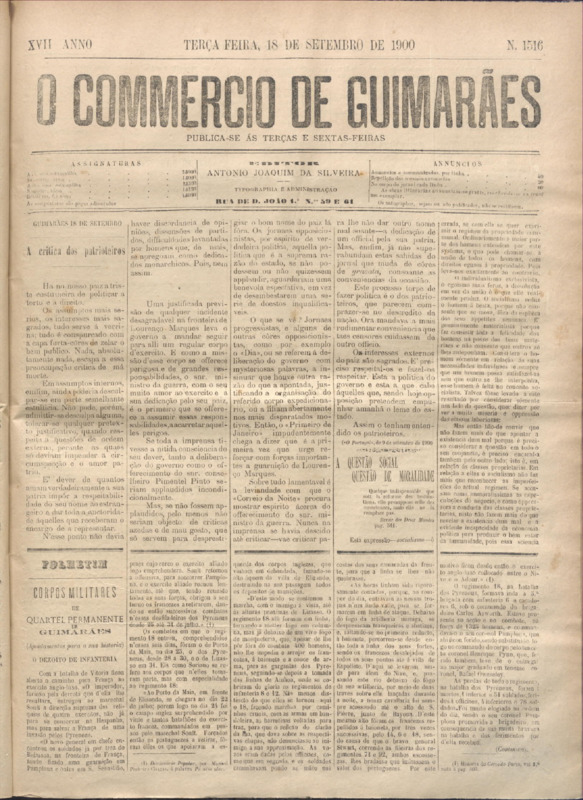 Comércio de Guimarães, nº 1517, de 18/09/1900