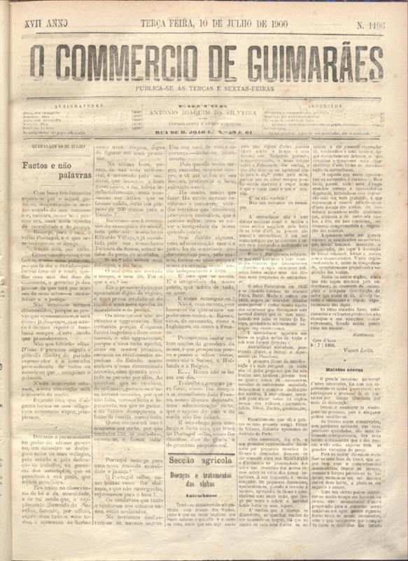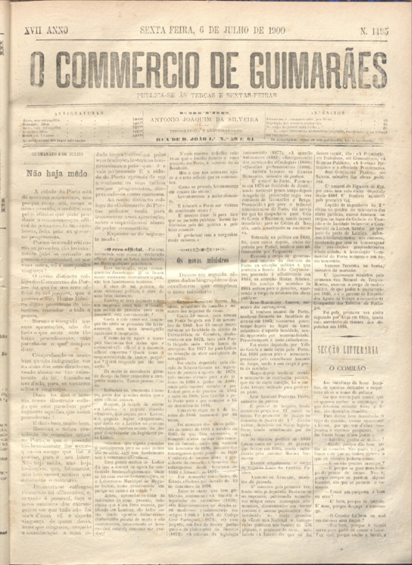 Comércio de Guimarães, nº 1496, de 06/07/1900