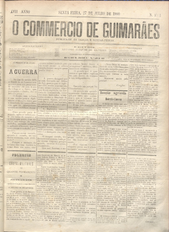 Comércio de Guimarães, nº 1502, de 27/07/1900