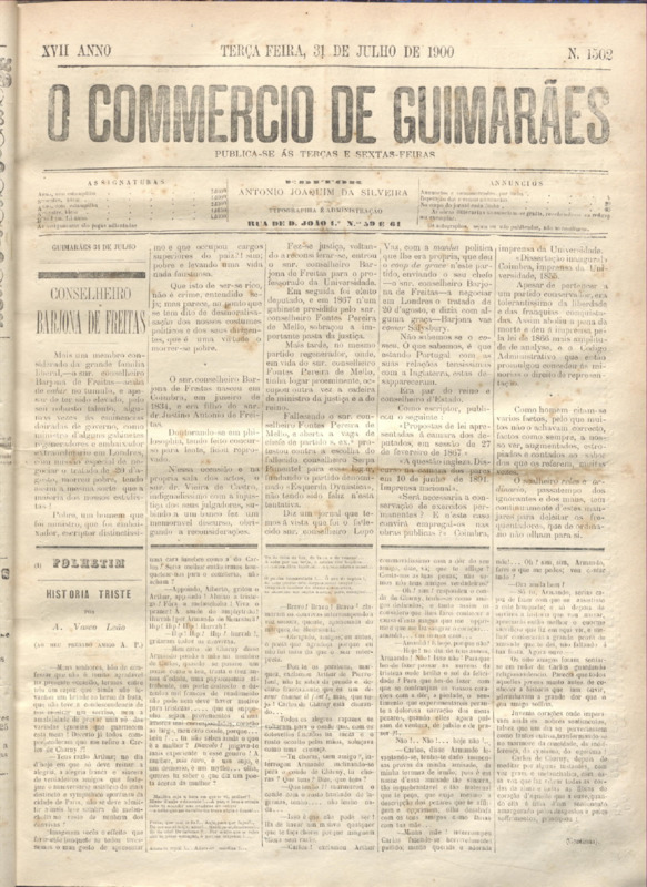 Comércio de Guimarães, nº 1503, de 31/07/1900