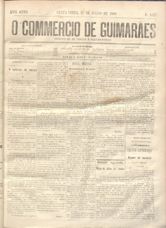 Comércio de Guimarães, nº 1497, de 10/07/1900