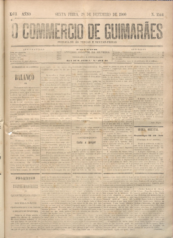 Comércio de Guimarães, nº 1544, de 28/12/1900