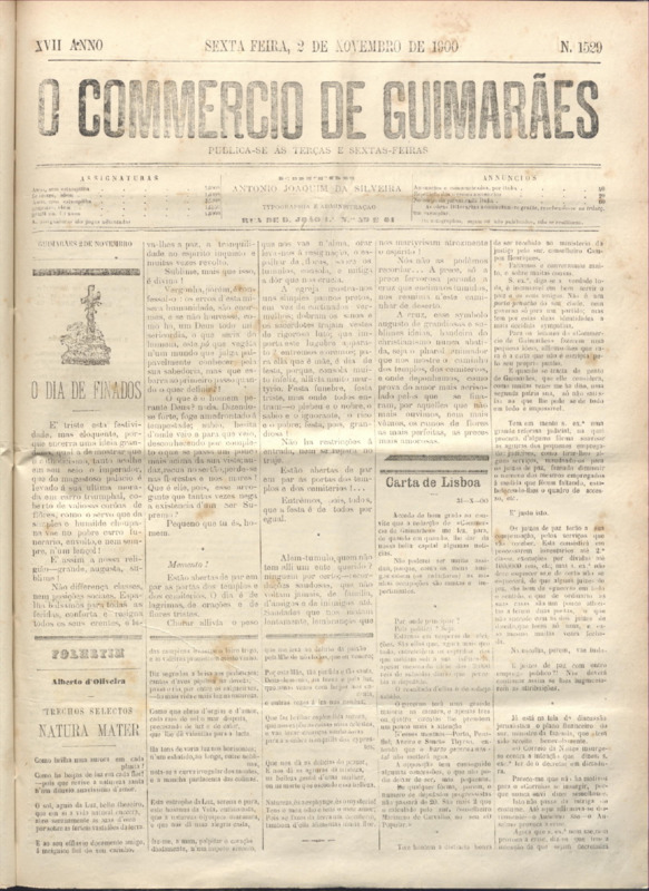 Comércio de Guimarães, nº 1529, de 30/10/1900