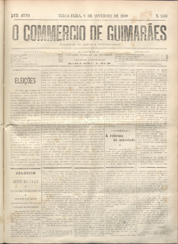 Comércio de Guimarães, nº 1531, de 06/11/1900