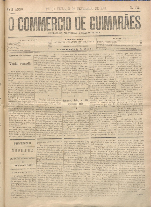 Comércio de Guimarães, nº 1554, de 05/02/1901