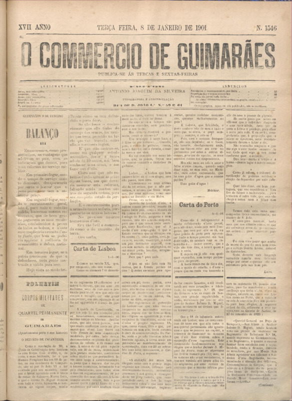 Comércio de Guimarães, nº 1546, de 08/01/1901
