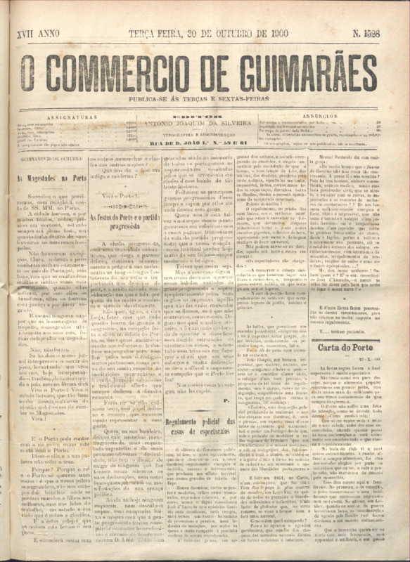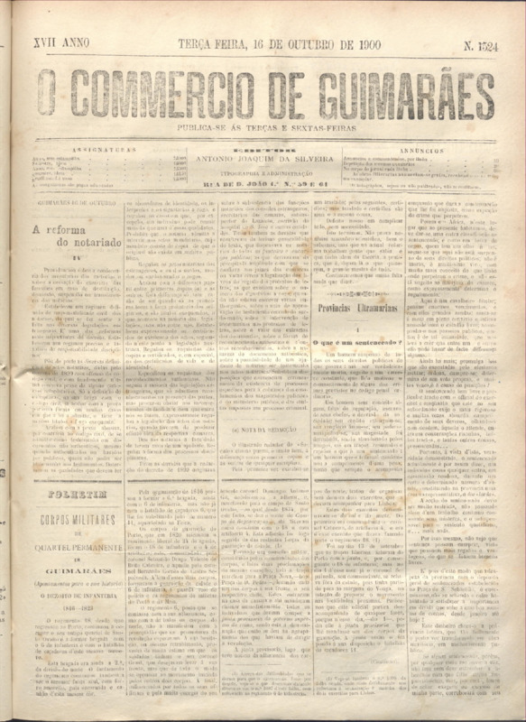 Comércio de Guimarães, nº 1525, de 16/10/1900