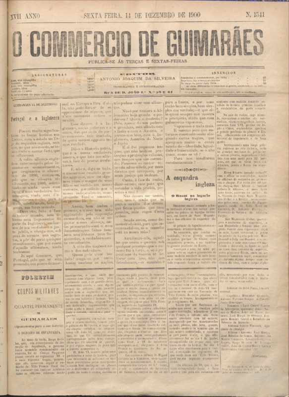 Comércio de Guimarães, nº 1541, de 14/12/1900