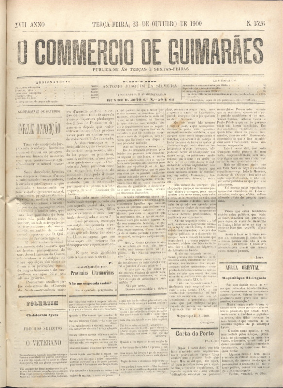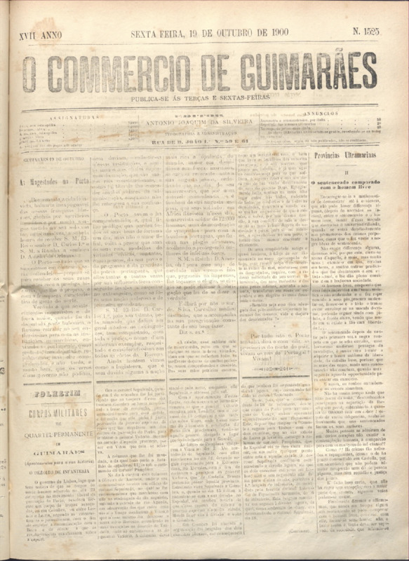 Comércio de Guimarães, nº 1526, de 19/10/1900