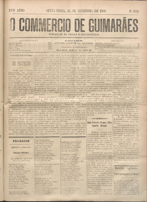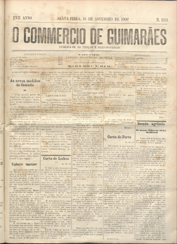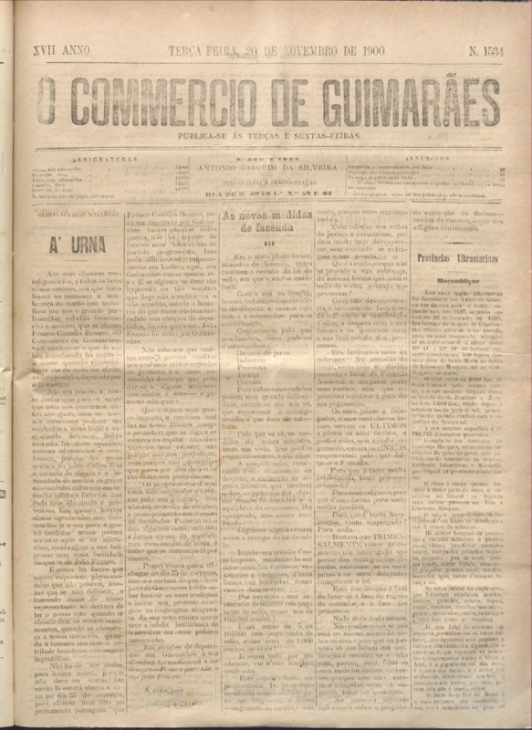 Comércio de Guimarães, nº 1534, de 16/11/1900