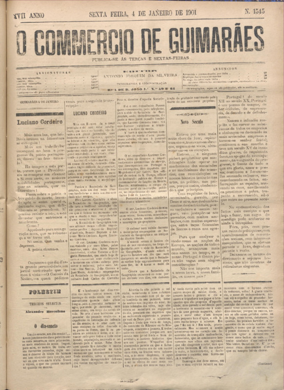 Comércio de Guimarães, nº 1545, de 04/01/1901
