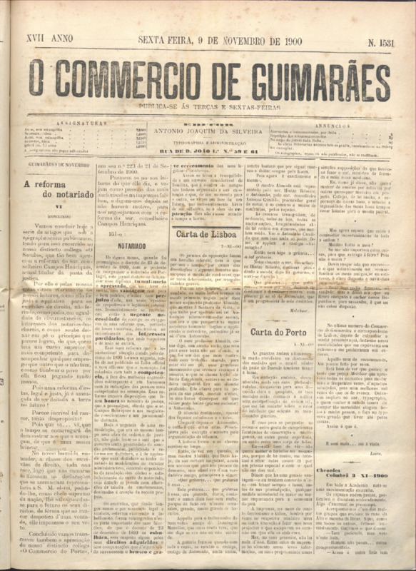 Comércio de Guimarães, nº 1532, de 09/11/1900