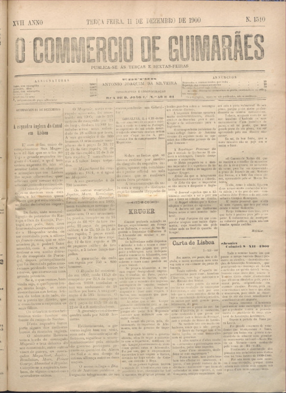 Comércio de Guimarães, nº 1540, de 11/12/1900