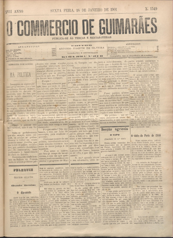 Comércio de Guimarães, nº 1549, de 18/01/1901