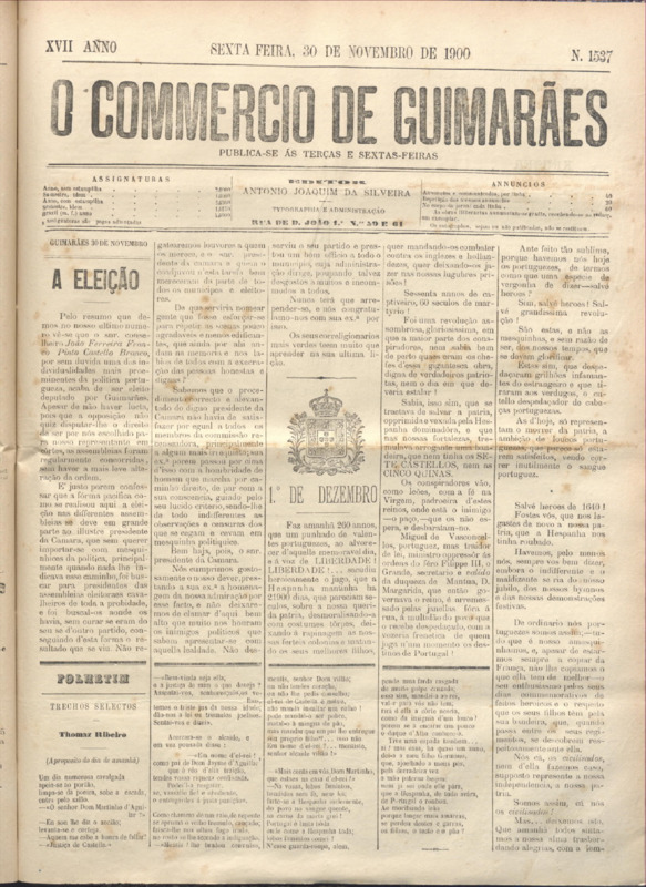 Comércio de Guimarães, nº 1537, de 30/11/1900