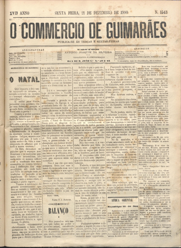 Comércio de Guimarães, nº 1543, de 21/12/1900