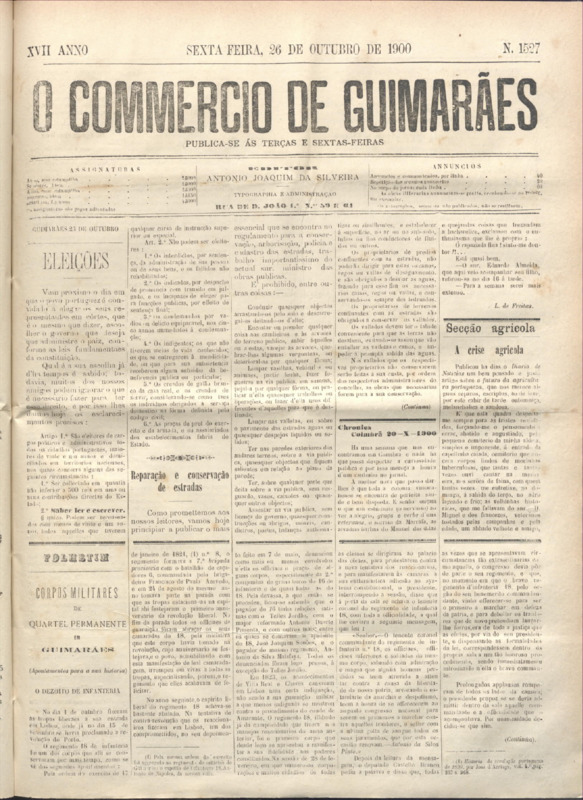 Comércio de Guimarães, nº 1527, de 23/10/1900