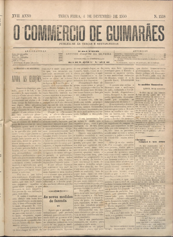 Comércio de Guimarães, nº 1538, de 04/12/1900
