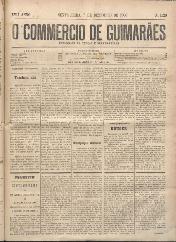 Comércio de Guimarães, nº 1539, de 07/12/1900