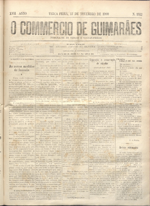 Comércio de Guimarães, nº 1533, de 13/11/1900