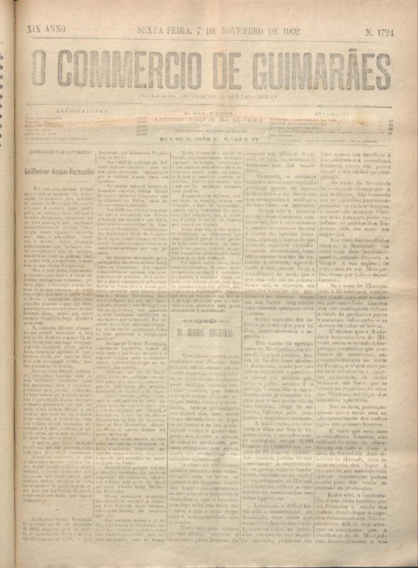 Comércio de Guimarães, nº 1724, de 07/11/1902