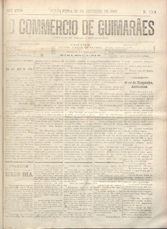 Comércio de Guimarães, nº 1708, de 12/09/1902