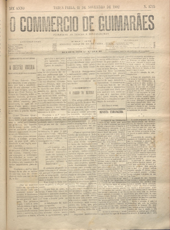 Comércio de Guimarães, nº 1728, de 21/11/1902