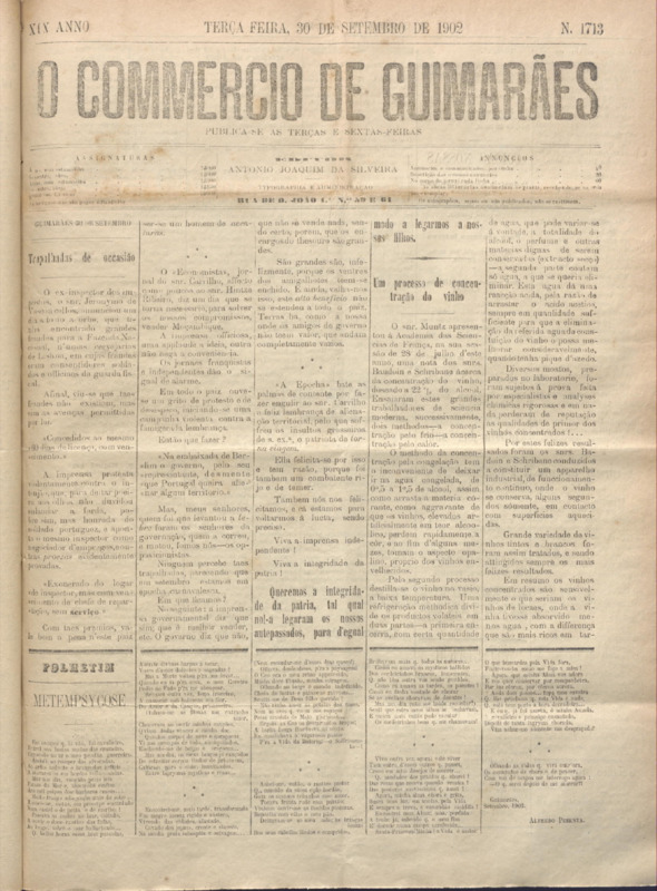 Comércio de Guimarães, nº 1713, de 30/09/1902