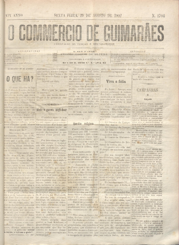 Comércio de Guimarães, nº 1704, de 29/08/1902