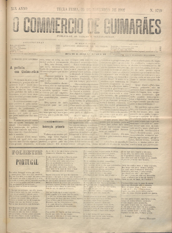 Comércio de Guimarães, nº 1729, de 25/11/1902