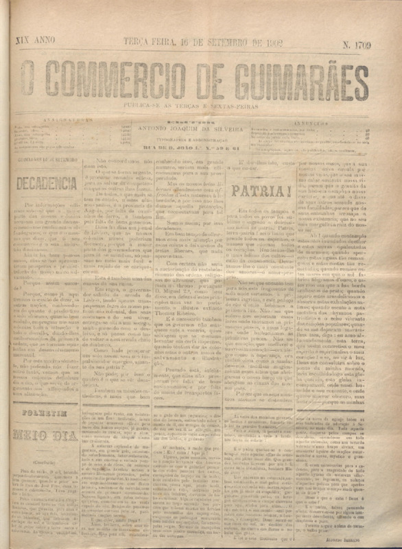 Comércio de Guimarães, nº 1709, de 16/09/1902