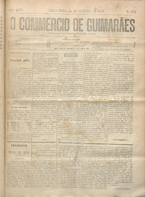 Comércio de Guimarães, nº 1717, de 14/10/1902